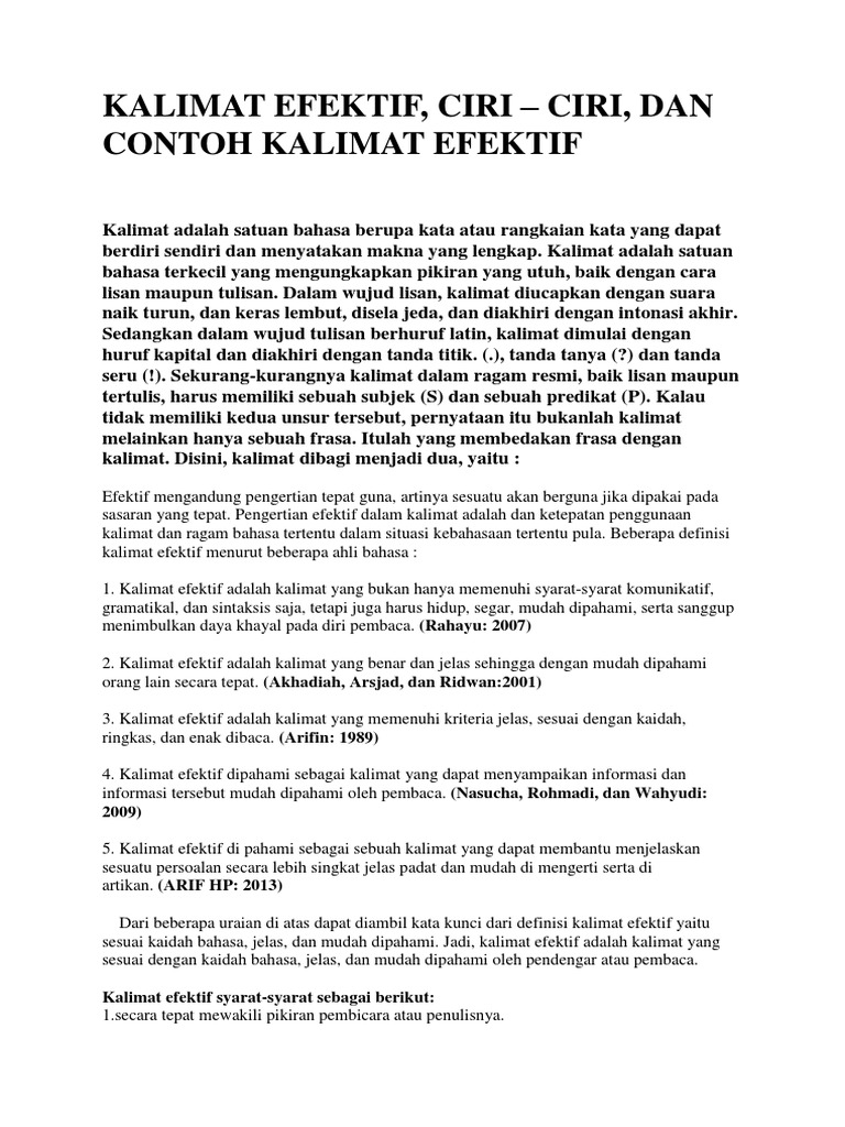 Sintaksis from image.slidesharecdn.com Akhidiah, dkk (1993:9), karangan yang baik memiliki beberapa ciri, diantaranya: Bermakna jelas, merupakan kesatuan yang bulat, singkat dan padat, memiliki kaidah kebahasaan dan komunikatif. Kohesi adalah hubungan antar kalimat di dalam sebuah wacana baik dalam skala gramatikal maupun dalam skala leksikal tertentu.
